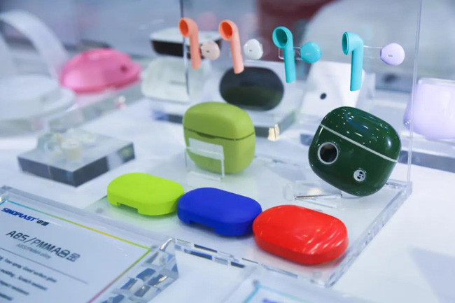 如具有高强度、尺寸精度高、耐化学溶剂、优秀的表面效果、免喷涂等特点的特种PA+GF材料,可应用于智能手表(手环)中框及后壳;而具有表面耐刮花、高光免喷涂、半透光效果等特点的ABS/PMMA合金,则更多应用于TWS充电盒部件;同时还有LDS材料、PC/PBT合金、PC/ABS合金等材料,广泛应用于手表(手环)中框及天线支架相关部件及TWS充电盒部件及耳机部件等领域。