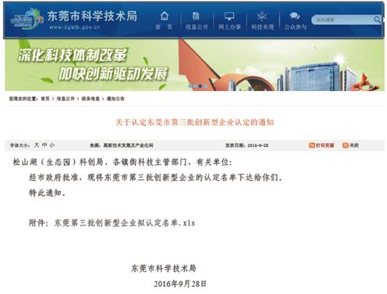 科技创新是企业发展的源动力,也是企业生存与市场竞争的保障。东莞市创新型企业成功获得认定,彰显了我司技术研发的创新实力,将为打造创新型经济强市贡献一份力量。